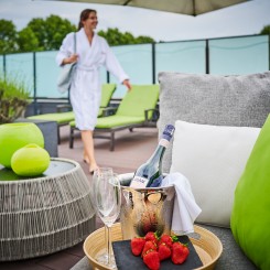 Nach einem erlebnisreichen Urlaubstag zieht es die Gäste in die Wellnessoase des Hotel Asam. Verschiedene Saunen, Ruhebereiche und ein Whirlpool sorgen für pure Entspannung. Eine Einheit im Fitnessraum sorgt danach für Schwung, bevor es für ein drei bis sieben Gänge Menü oder Ausgesuchtes aus der à la carte-Küche ins Restaurant geht.